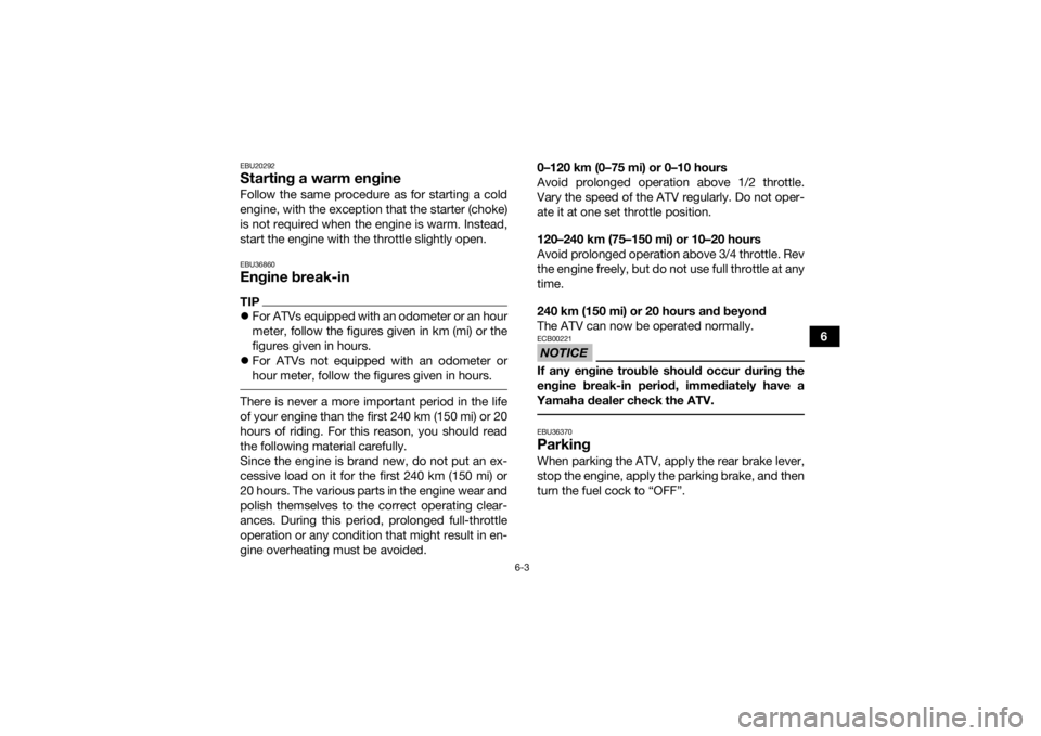 start the engine with the throttle slightly open.EBU36860Engine break-inTIPFor ATVs equipped with an odometer or an hour