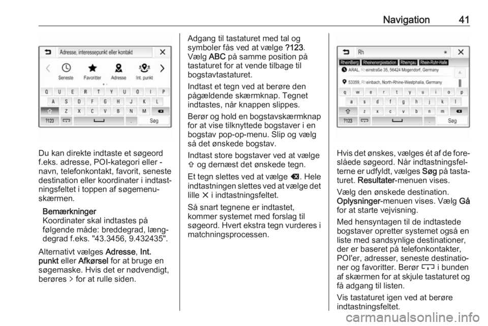 f.eks. adresse, POI-kategori eller - navn, telefonkontakt, favorit, seneste