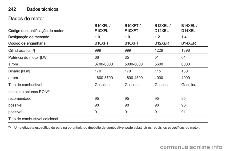 242Dados técnicosDados do motorCódigo de identificação do motor
