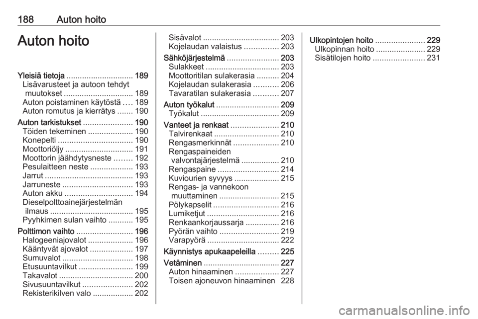 Toisen ajoneuvon hinaaminen 228Ulkopintojen hoito ......................229