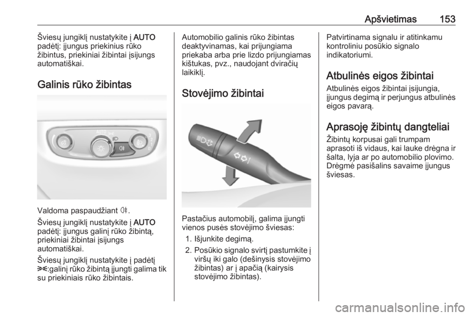 Apšvietimas153Šviesų jungiklį nustatykite į AUTO