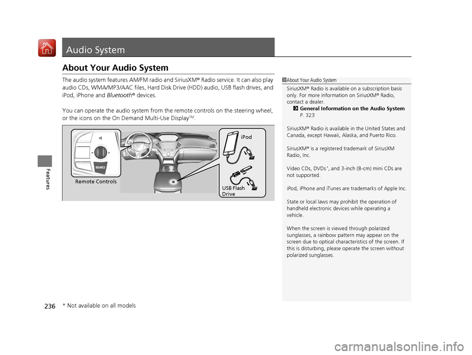 HomeLink ® Universal Transceiver P. 394 Bluetooth® HandsFreeLink ® P. 397 AcuraLink ® P. 438