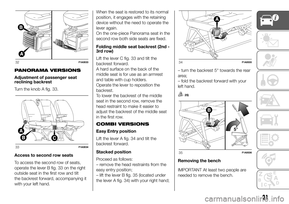 the lever A fig. 34) with your right hand;– turn the backrest 5° towards the rear