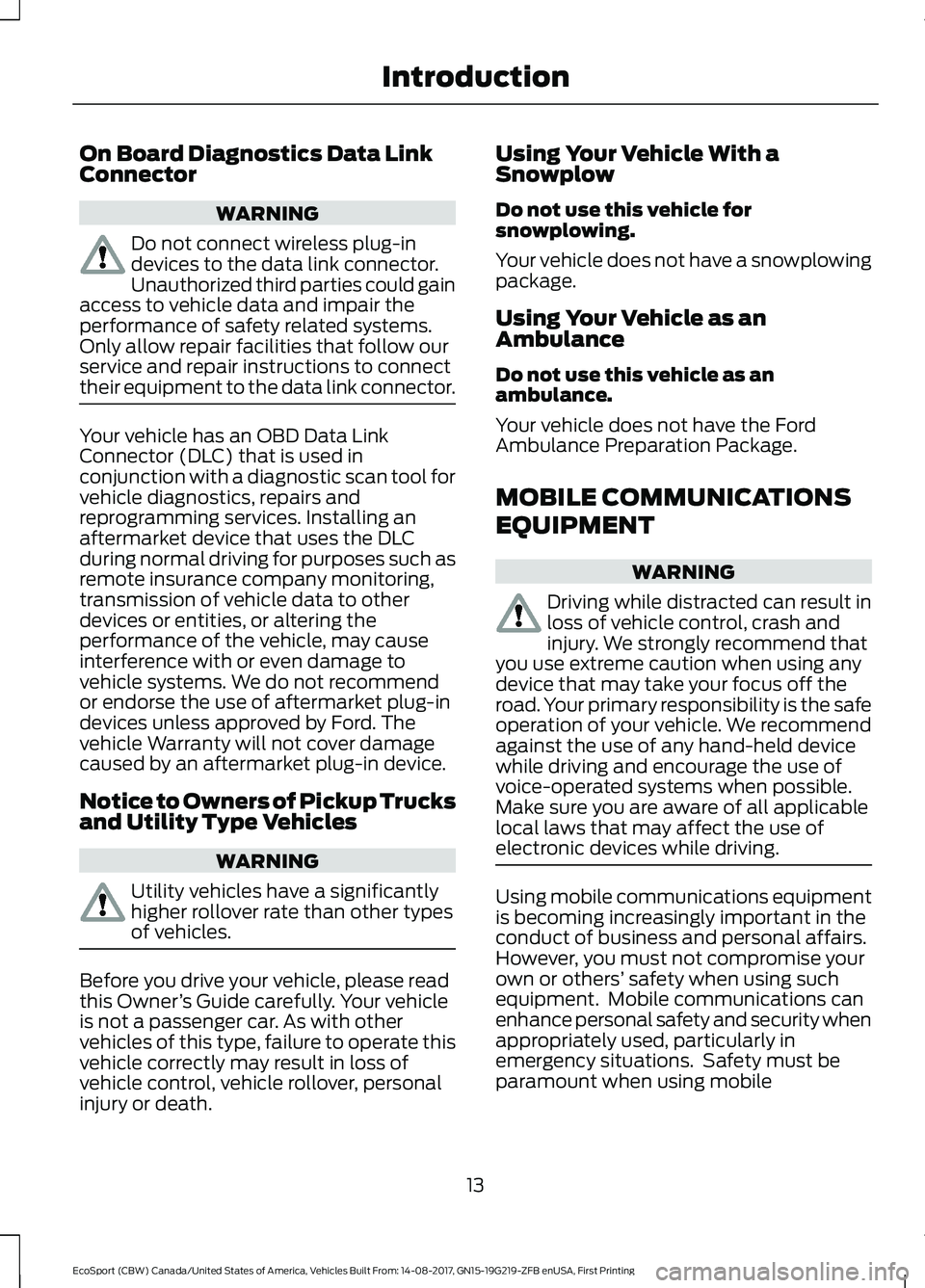13EcoSport (CBW) Canada/United States of America, Vehicles Built From: 14-08-2017, GN15-19G219-ZFB enUSA, First PrintingIntroduction