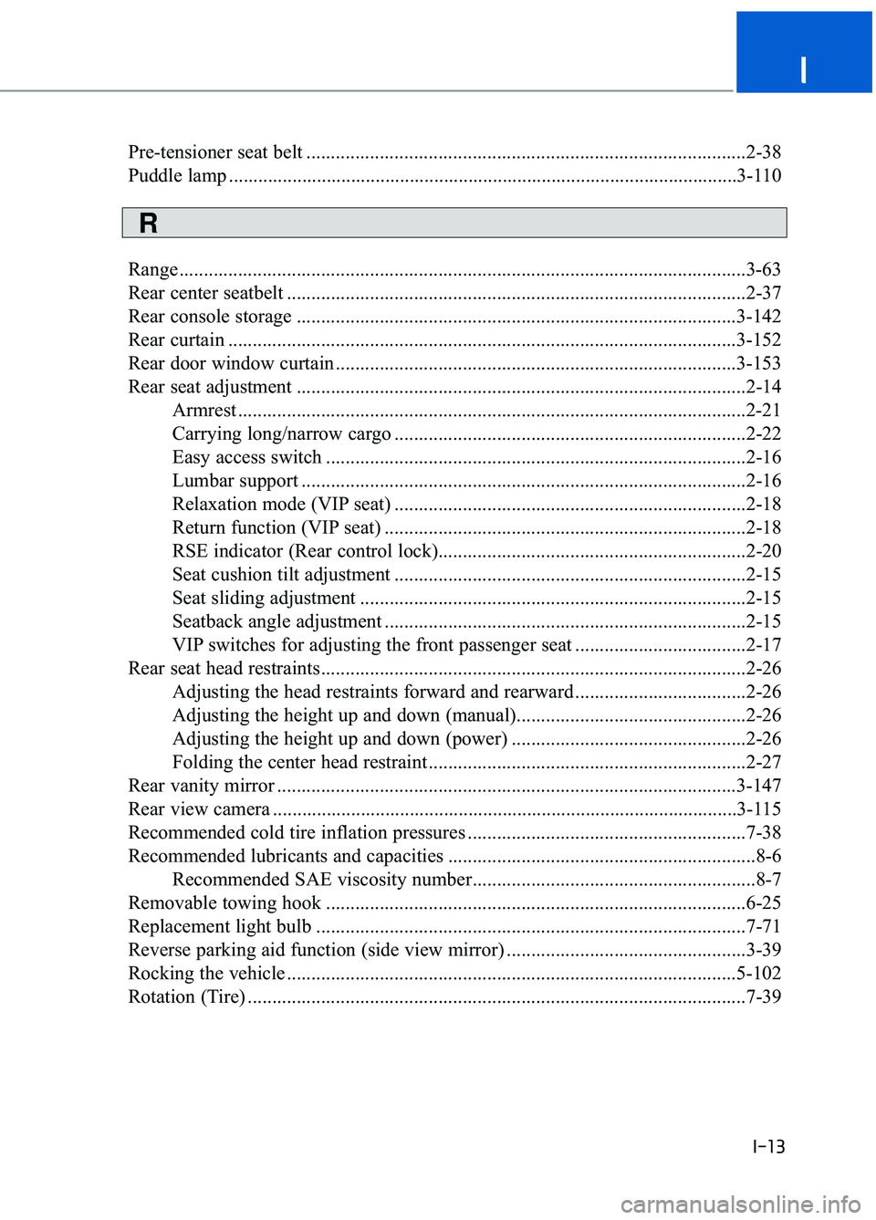 Recommended cold tire inflation pressures .........................................................7-38