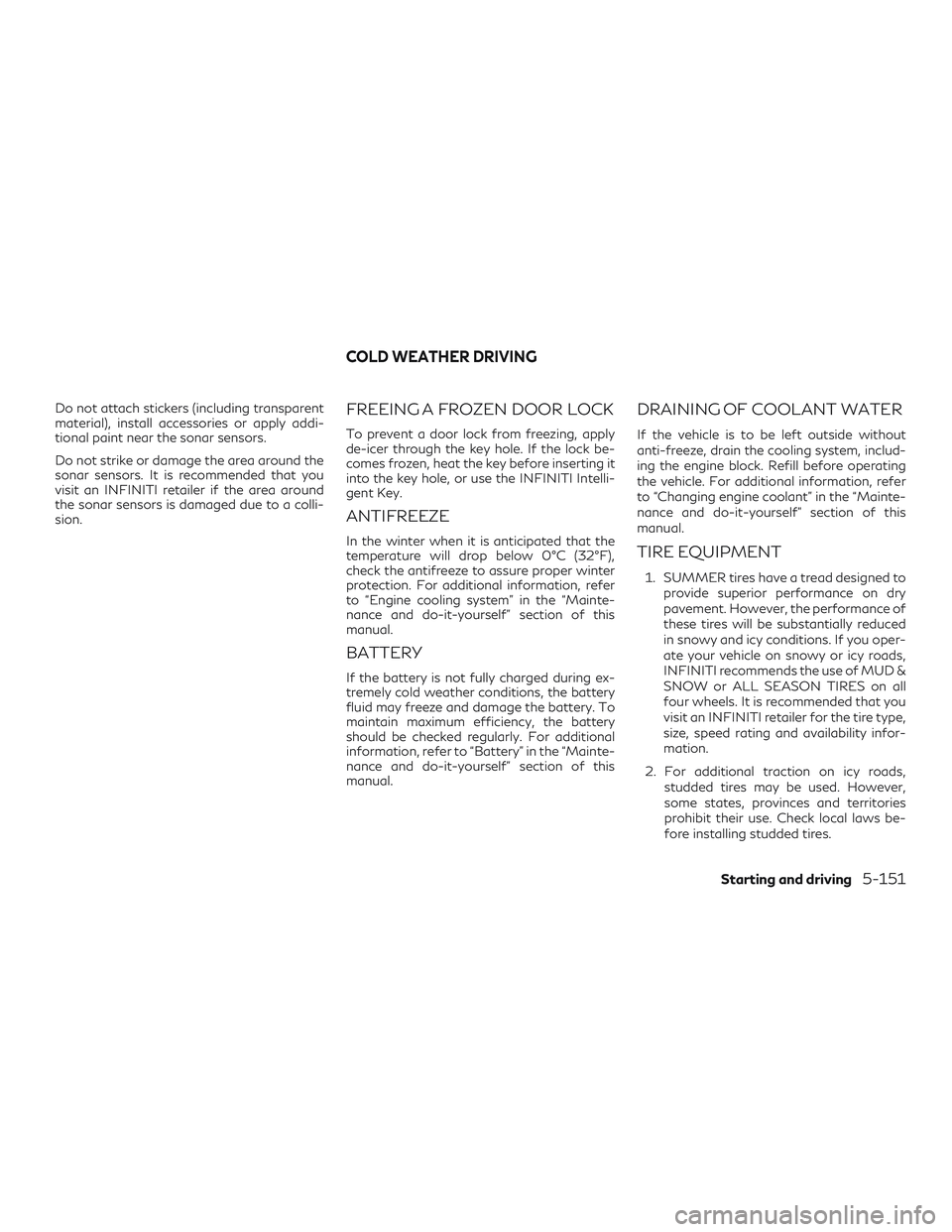 INFINITI QX60 2018  Owners Manual Do not attach stickers (including transparent