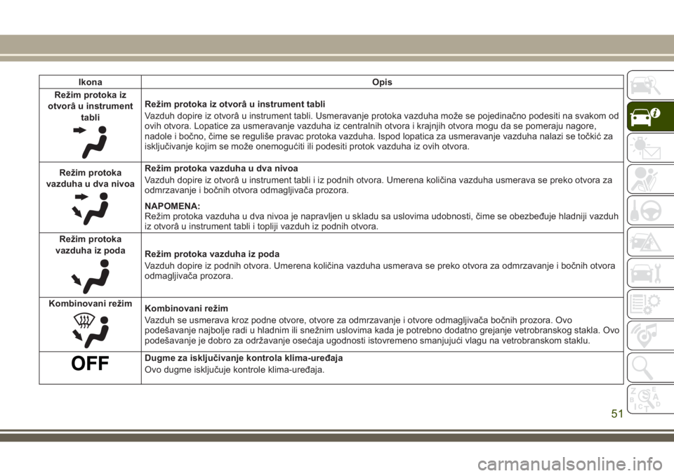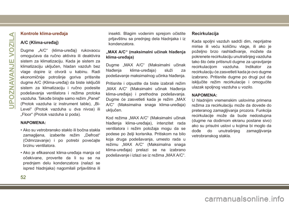 između režima recirkulacije i režima spoljašnjeg vazduha. Recirkulacija može da se koristi kada su spolja prisutni dim,