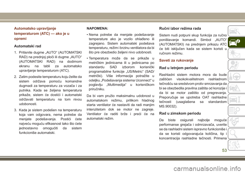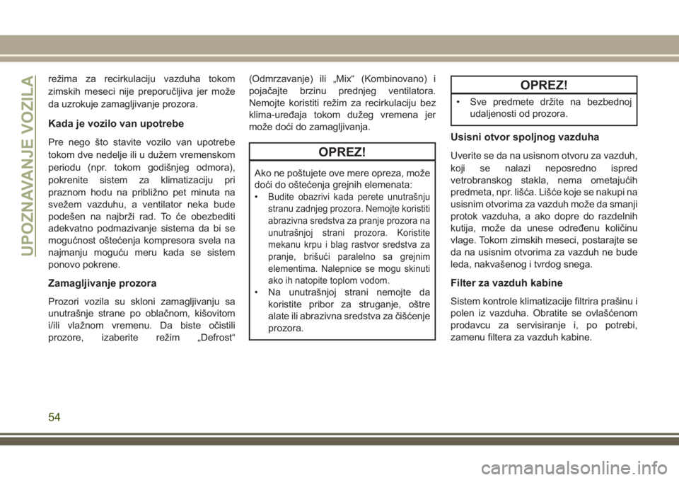 režima recirkulacije može da dovede do ustajalosti unutrašnjeg vazduha, a prozori će se zamagliti. Produžena primena