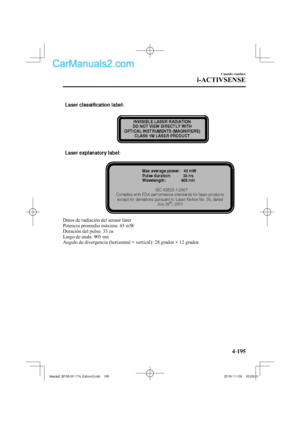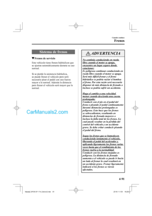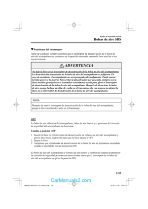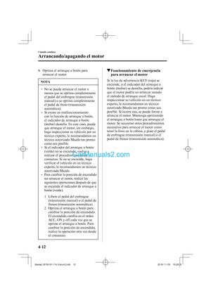 Mazda. Si fuera necesario revender su vehículo, debe incluir este manual para el uso del próximo propietario.