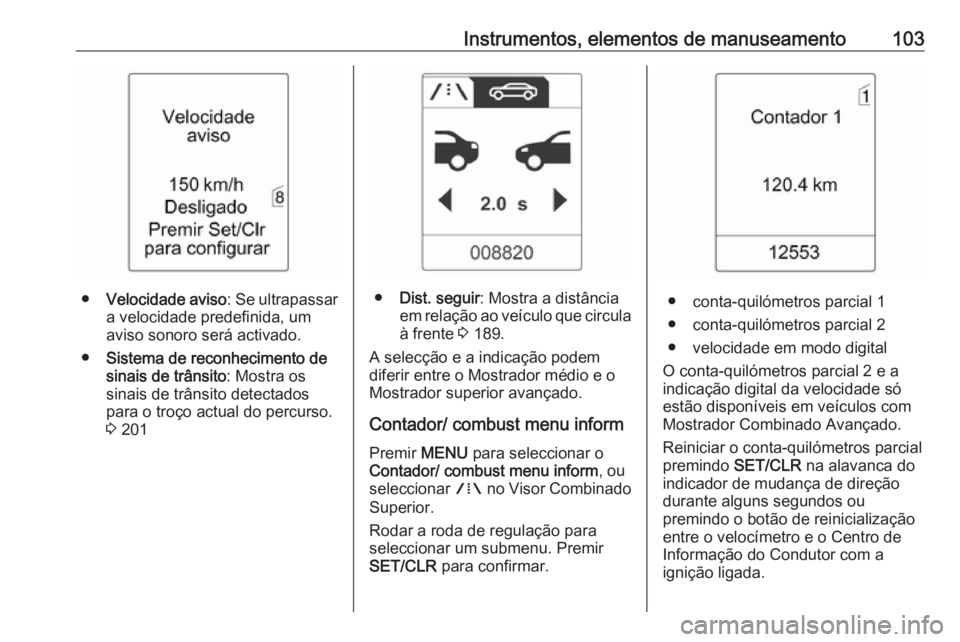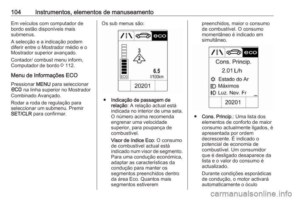 104Instrumentos, elementos de manuseamentoEm veículos com computador de