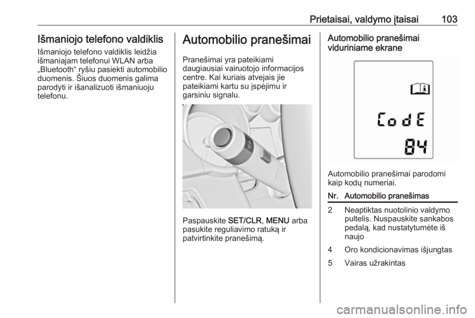 106Prietaisai, valdymo įtaisaiAutomobilio pranešimai