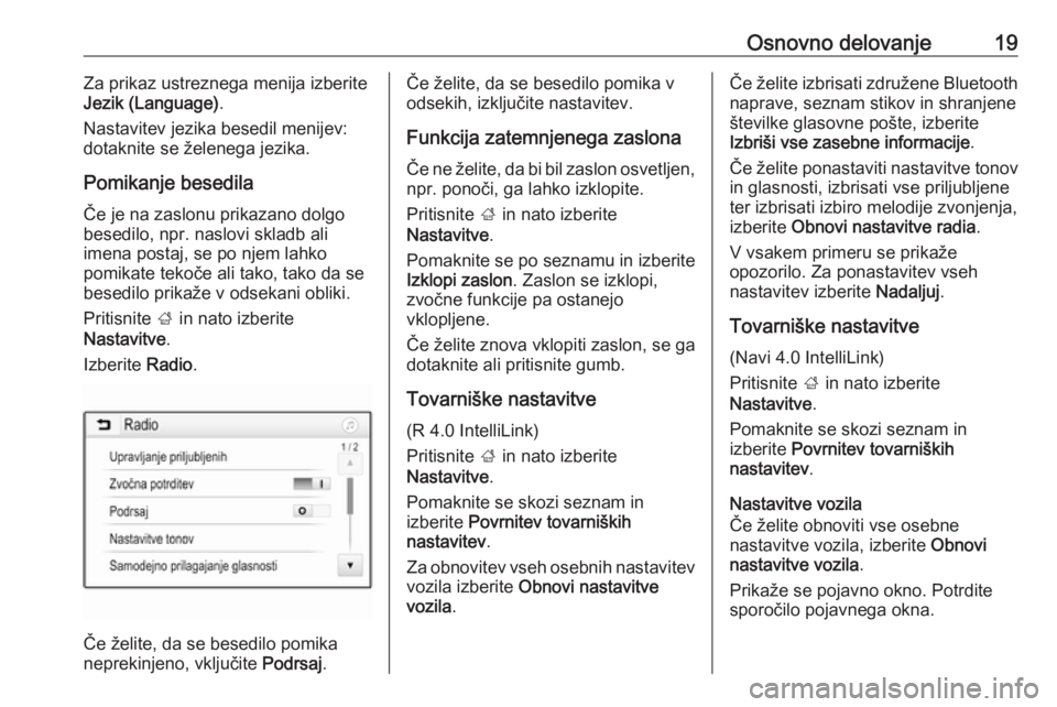 Osnovno delovanje19Za prikaz ustreznega menija izberite