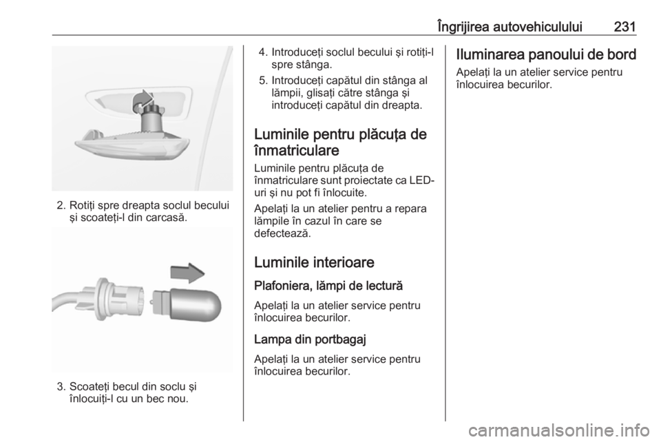 2. Rotiţi spre dreapta soclul beculuişi scoateţi-l din carcasă.