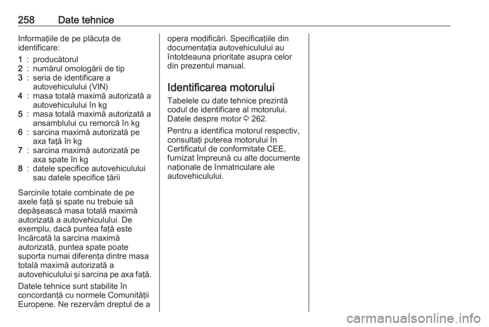 Date tehnice257Date tehniceIdentificarea autovehiculului......257