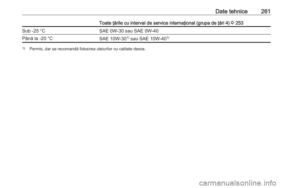 Date tehnice261Toate ţările cu interval de service internaţional (grupa de ţări 4) 3 253Sub -25 °CSAE 0W-30 sau SAE 0W-40Până la -20 °CSAE 10W-30 1)