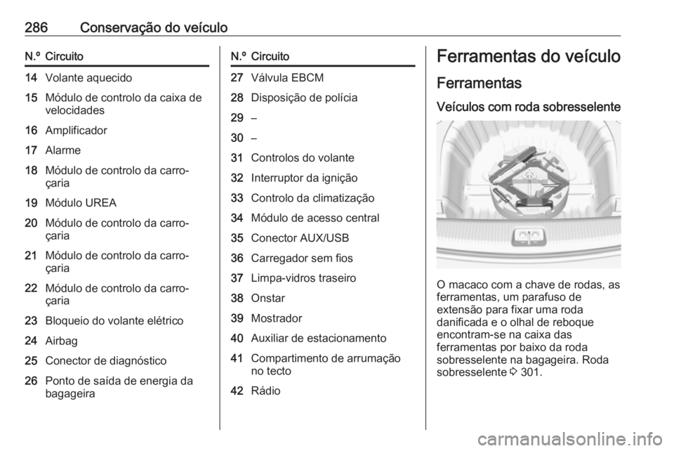 286Conservação do veículoN.ºCircuito14Volante aquecido15Módulo de controlo da caixa de