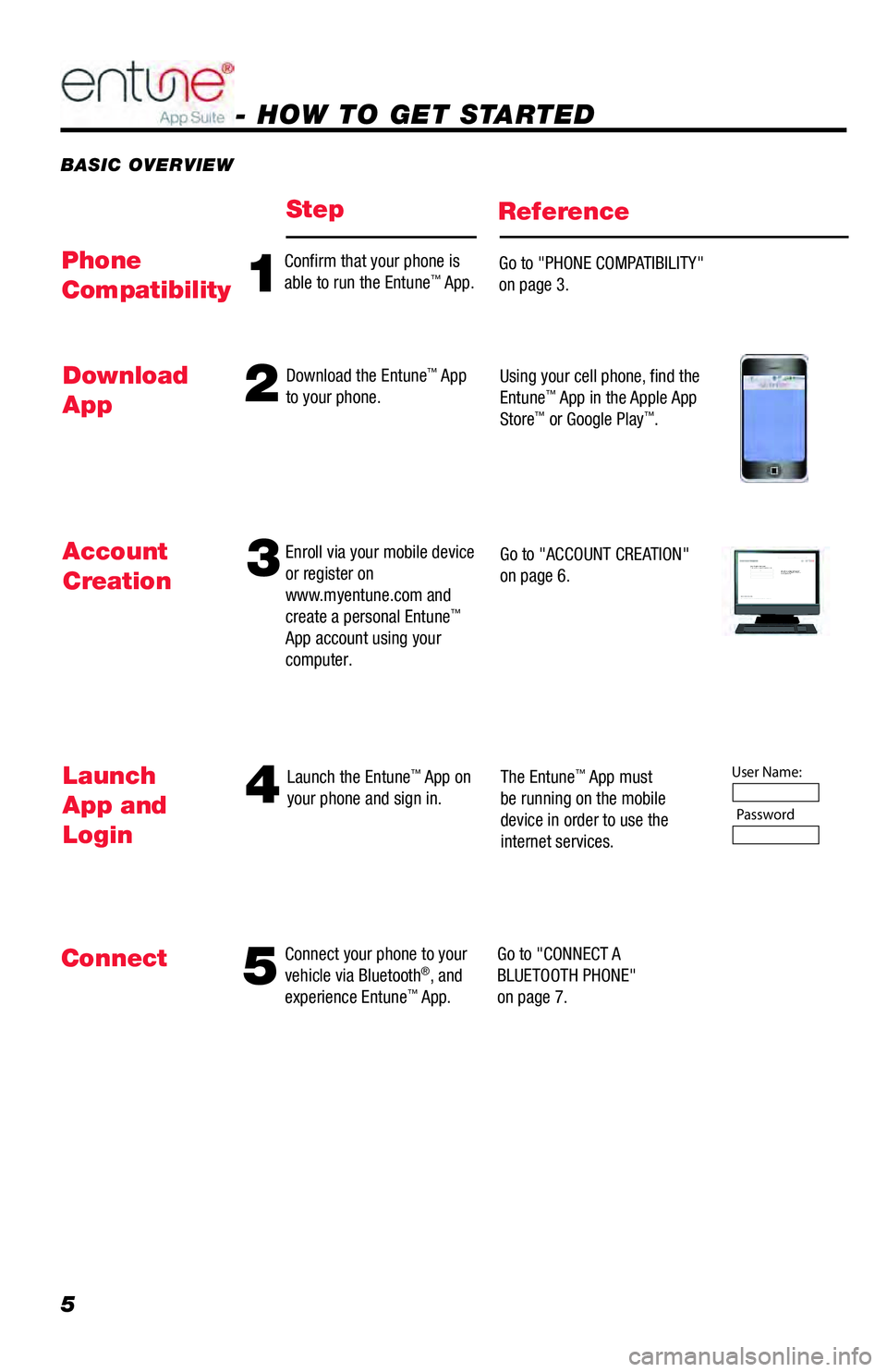 ACCOUNT CREATION, DOWNLOADING ENTUNE® APP SUITE TO YOUR PHONE, LAUNCH APP,