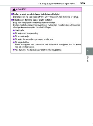 4-2. Kørselsprocedurer Tændingskontakt ................ 249