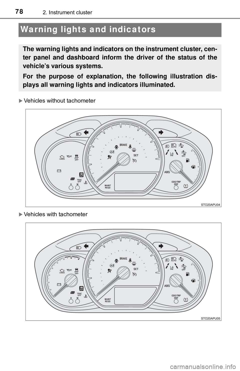 ter panel and dashboard inform th e driver of the status of the