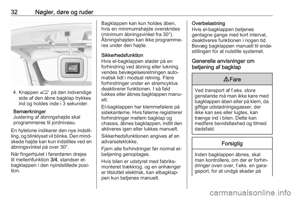 ● tryk på knappen under bagklap‐ pens udvendige pynteliste eller