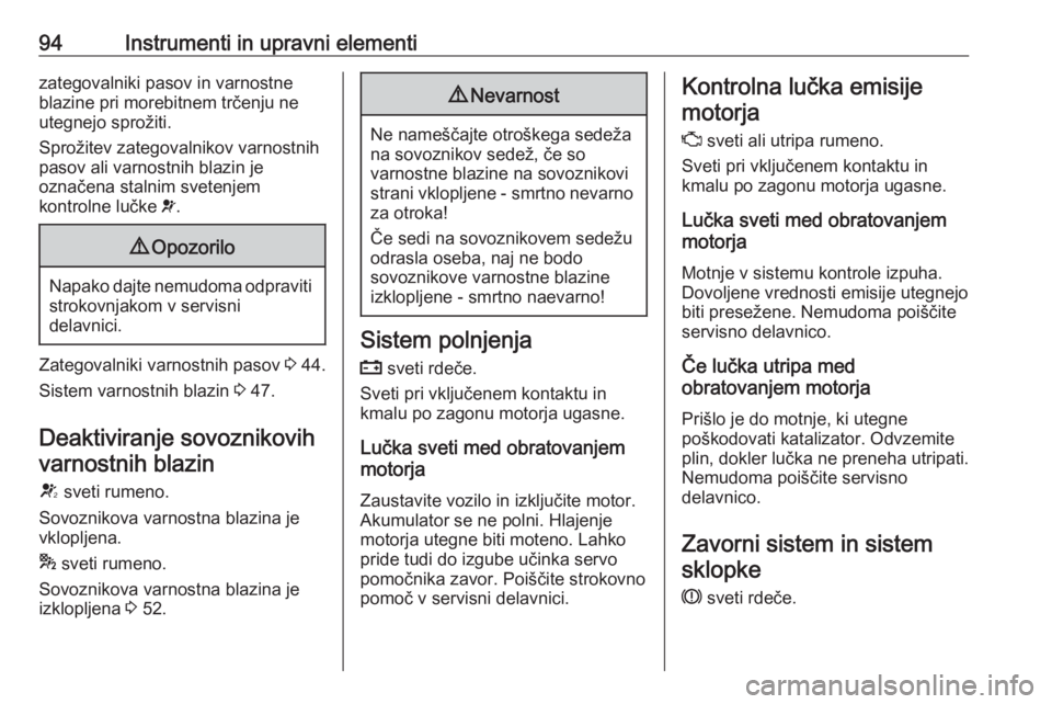 rdeče v instrumentni plošči.k za sovoznikov sedež sveti ali utripa