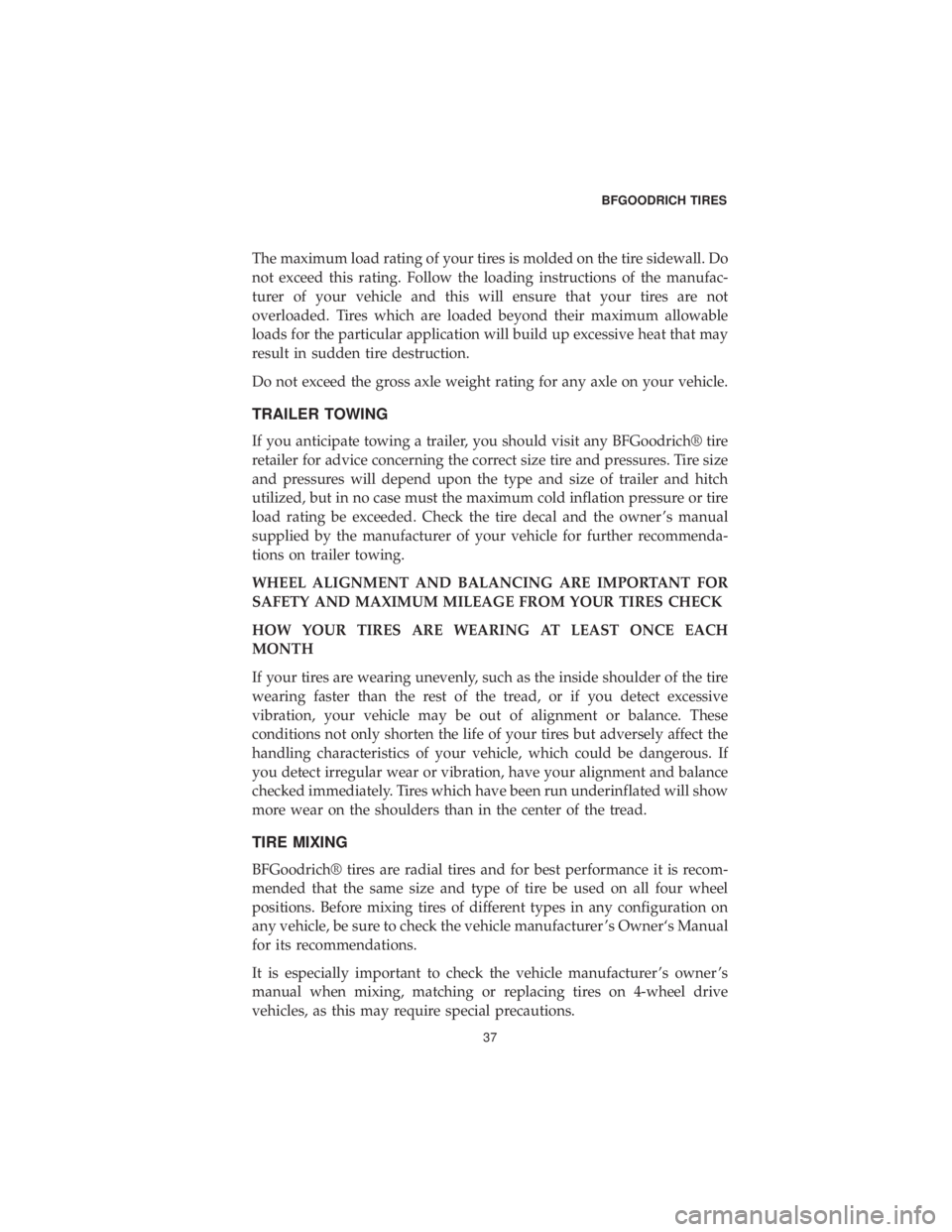 capacity of the tire on your vehicle. You will not exceed the tire’s load