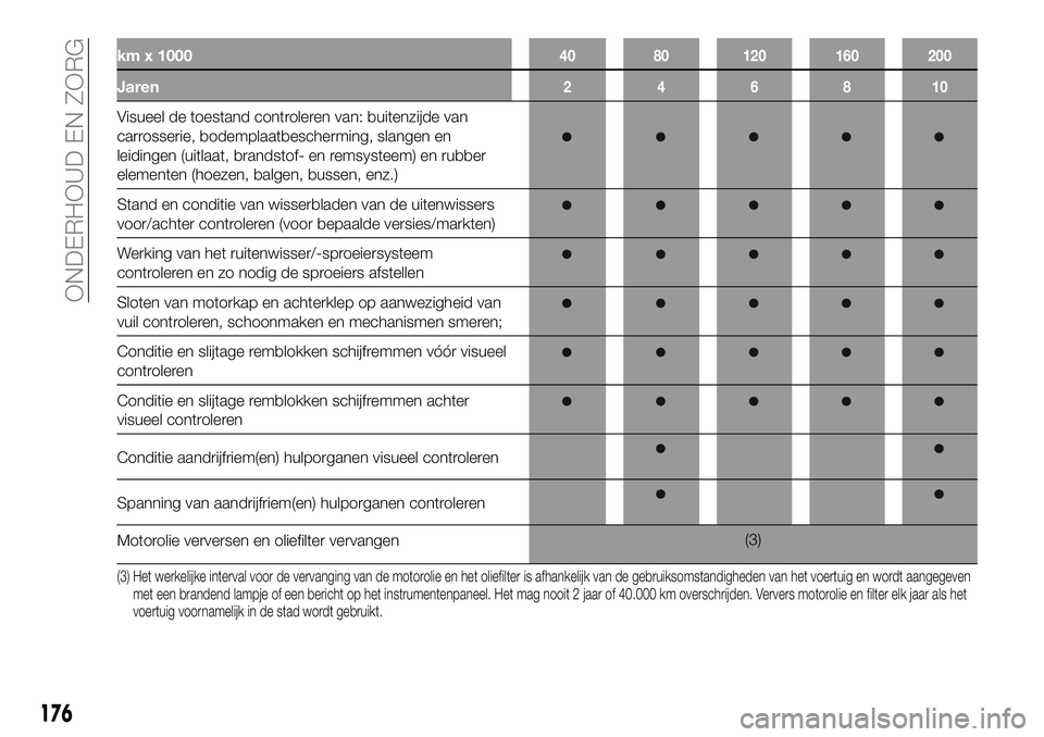 (3) Het werkelijke interval voor de vervanging van de motorolie en het oliefilter is afhankelijk van de gebruiksomstandigheden van het voertuig en wordt aangegeven