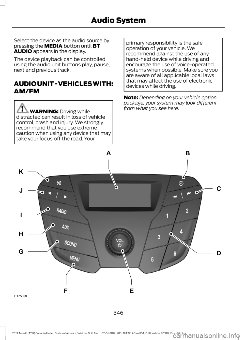 2019 Transit (TTH) Canada/United States of America, Vehicles Built From: 02-01-2019, KK3J 19A321 AB enUSA, Edition date: 201812, First-Printing Audio SystemE175058
