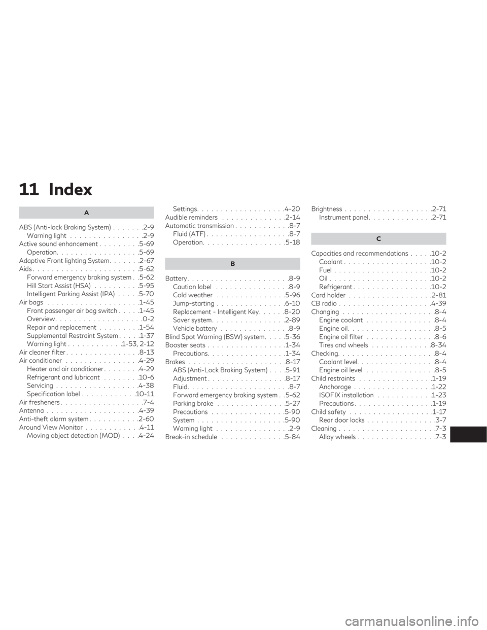 INFINITI QX30 2019  Owners Manual 11 Index
