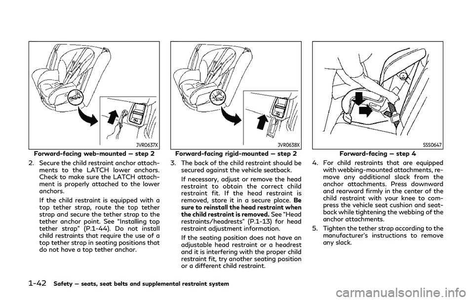2. Secure the child restraint anchor attach- ments to the LATCH lower anchors.