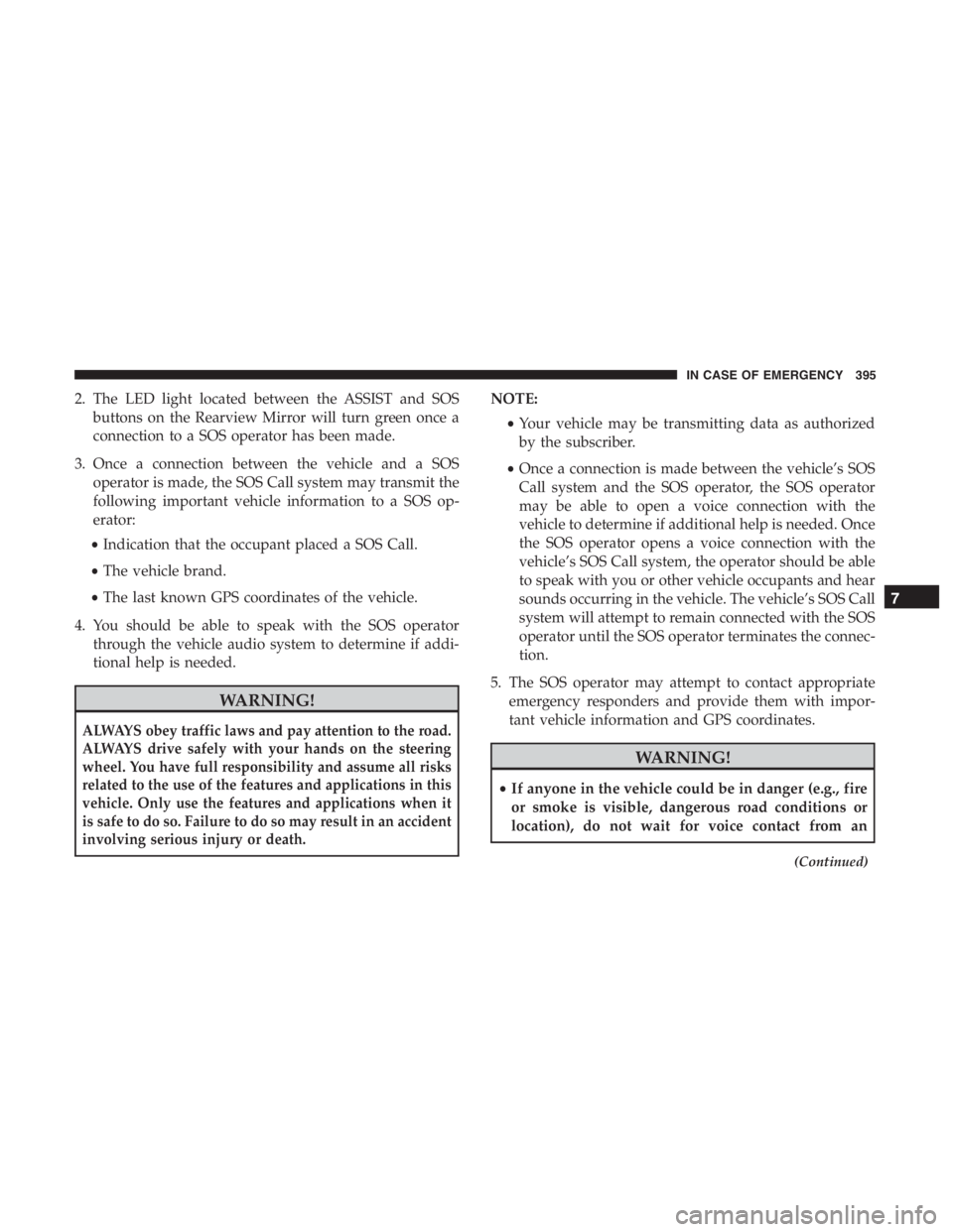 JEEP CHEROKEE TRAILHAWK 2019  Owners Manual 2. The LED light located between the ASSIST and SOSbuttons on the Rearview Mirror will turn green once a
