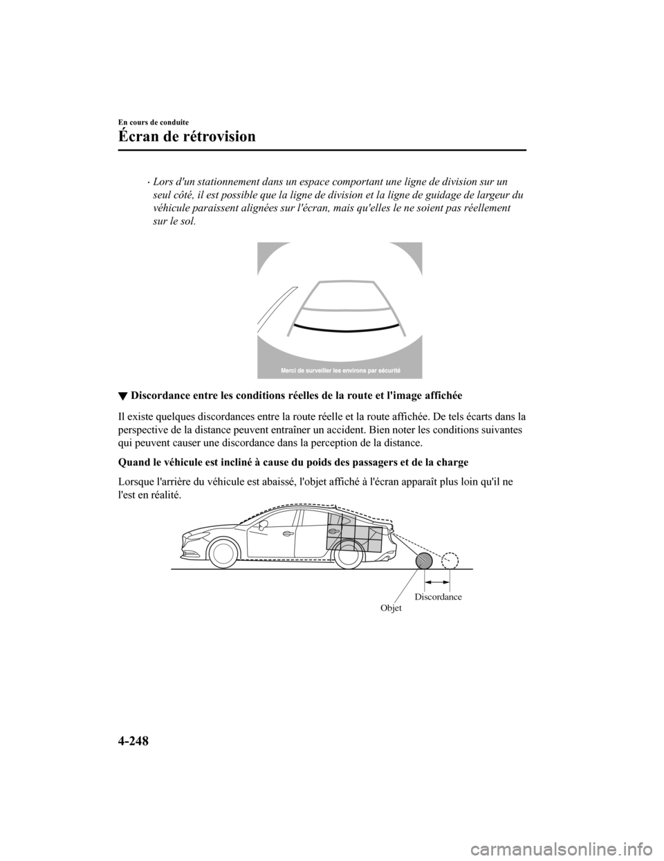Lorsque l'arrière du véhicule est abaissé, l'objet affiché à l'écran apparaît plus loin qu'il ne