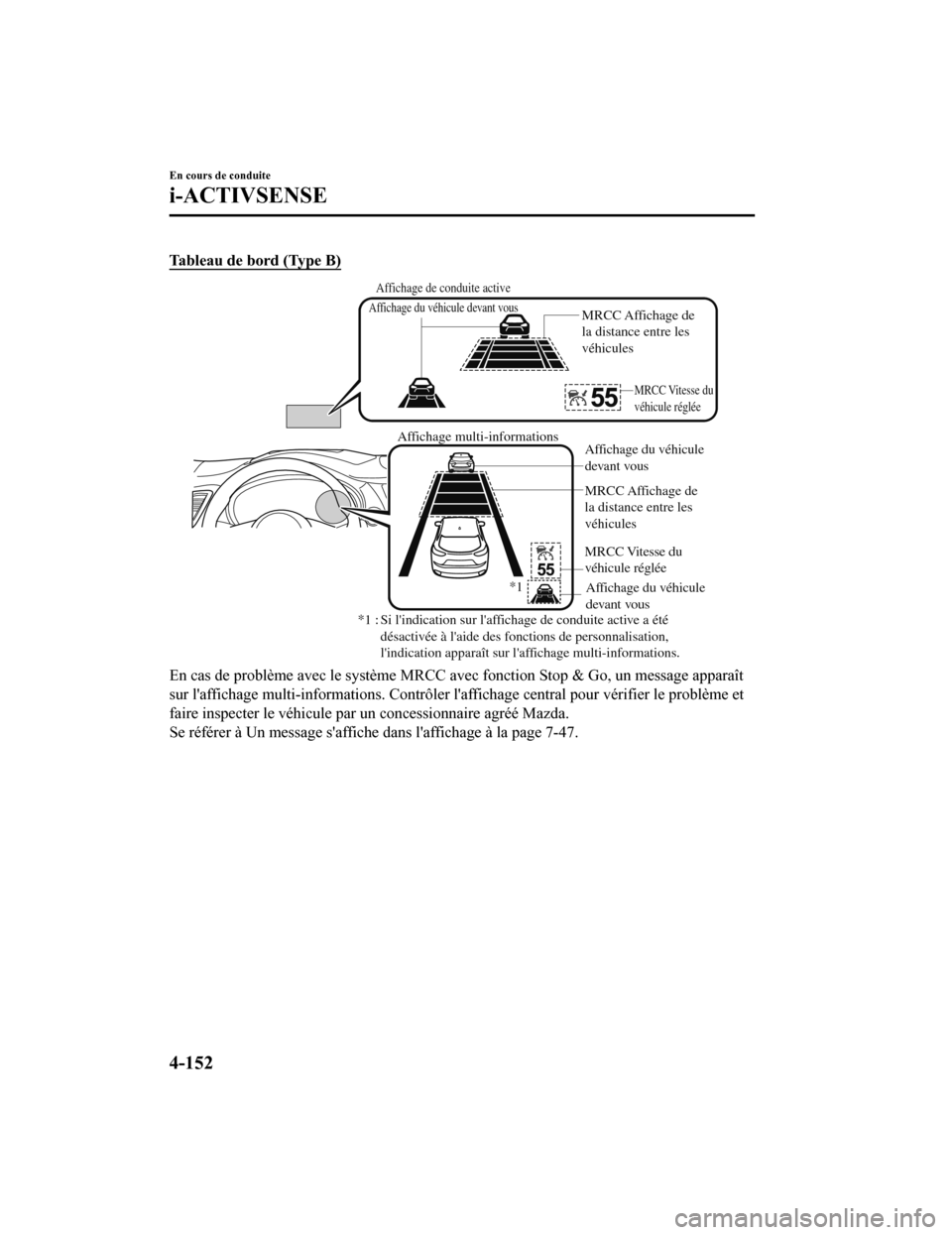 véhicule roule à 30 km/h (20 mi/h) ou moins et que le message “Mazda Radar Cruise