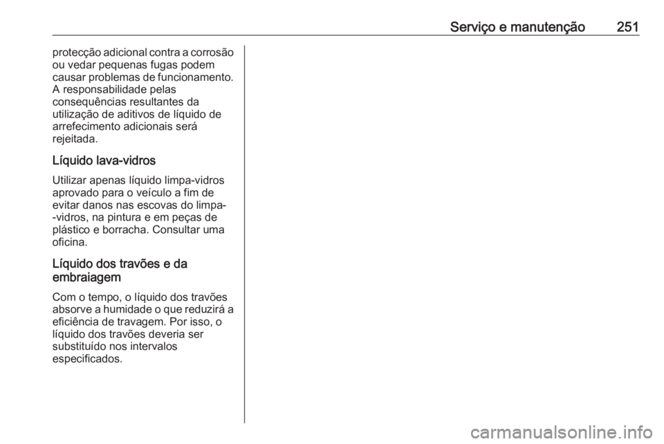 Líquidos e lubrificantes recomendados ....................... 249Informações gerais