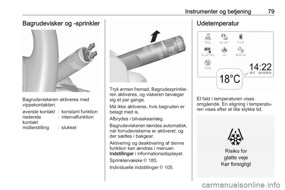 Instrumenter og betjening79Bagrudevisker og -sprinkler