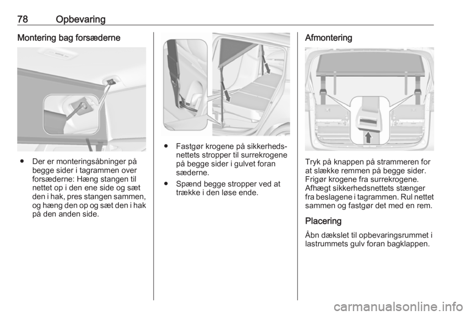 ● Fastgør krogene på sikkerheds‐ nettets stropper til surrekrogenepå begge sider i gulvet foran