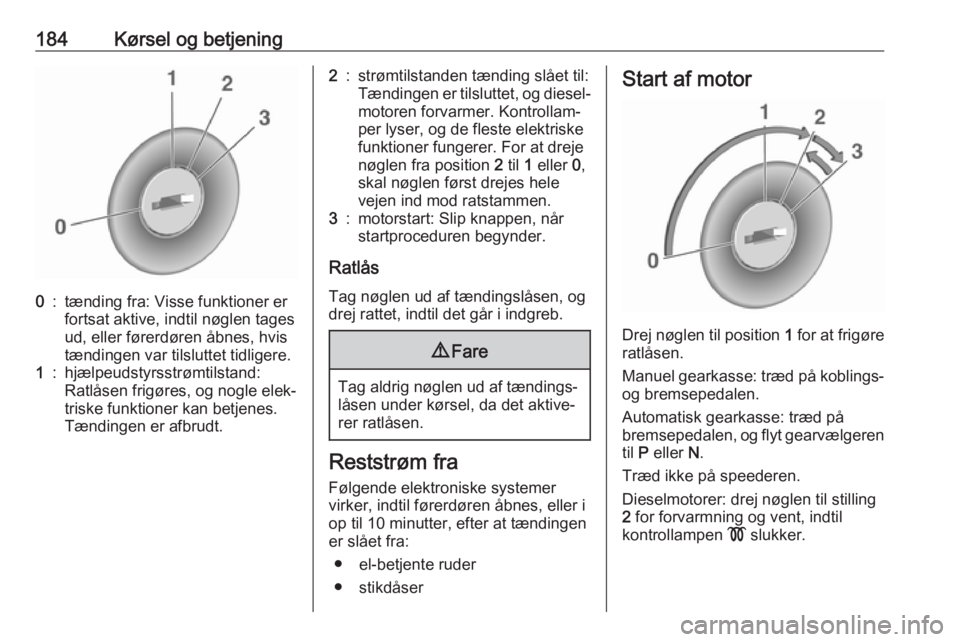 Kørsel og betjening185Drej nøglen kortvarigt til stilling 3 og