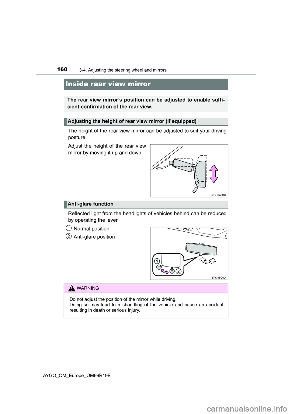Do not adjust the position of the mirror while driving.