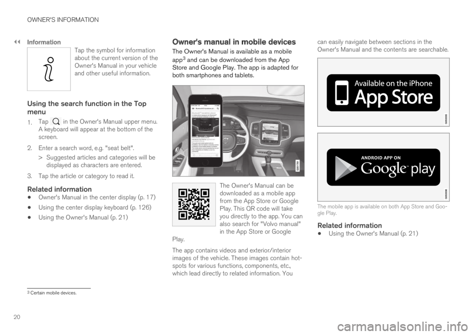 The Owner's Manual can bedownloaded as a mobile appfrom the App Store or GooglePlay. This QR code will takeyou directly to the app. You canalso search for "Volvo manual"in the App Store or GooglePlay.