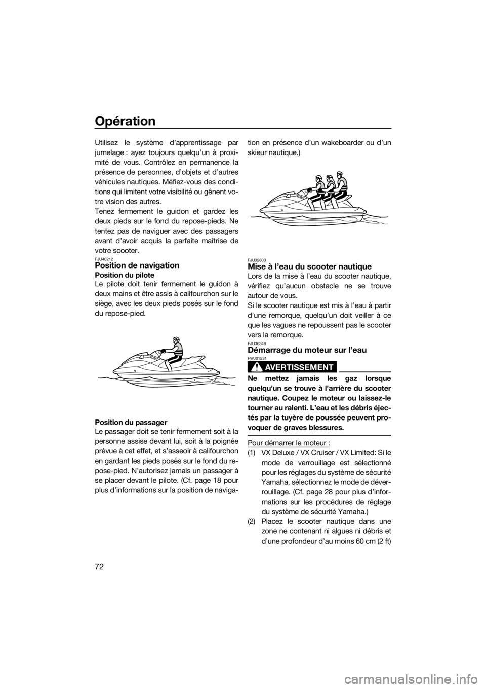 FJU36346Démarrage du moteur sur l’eau