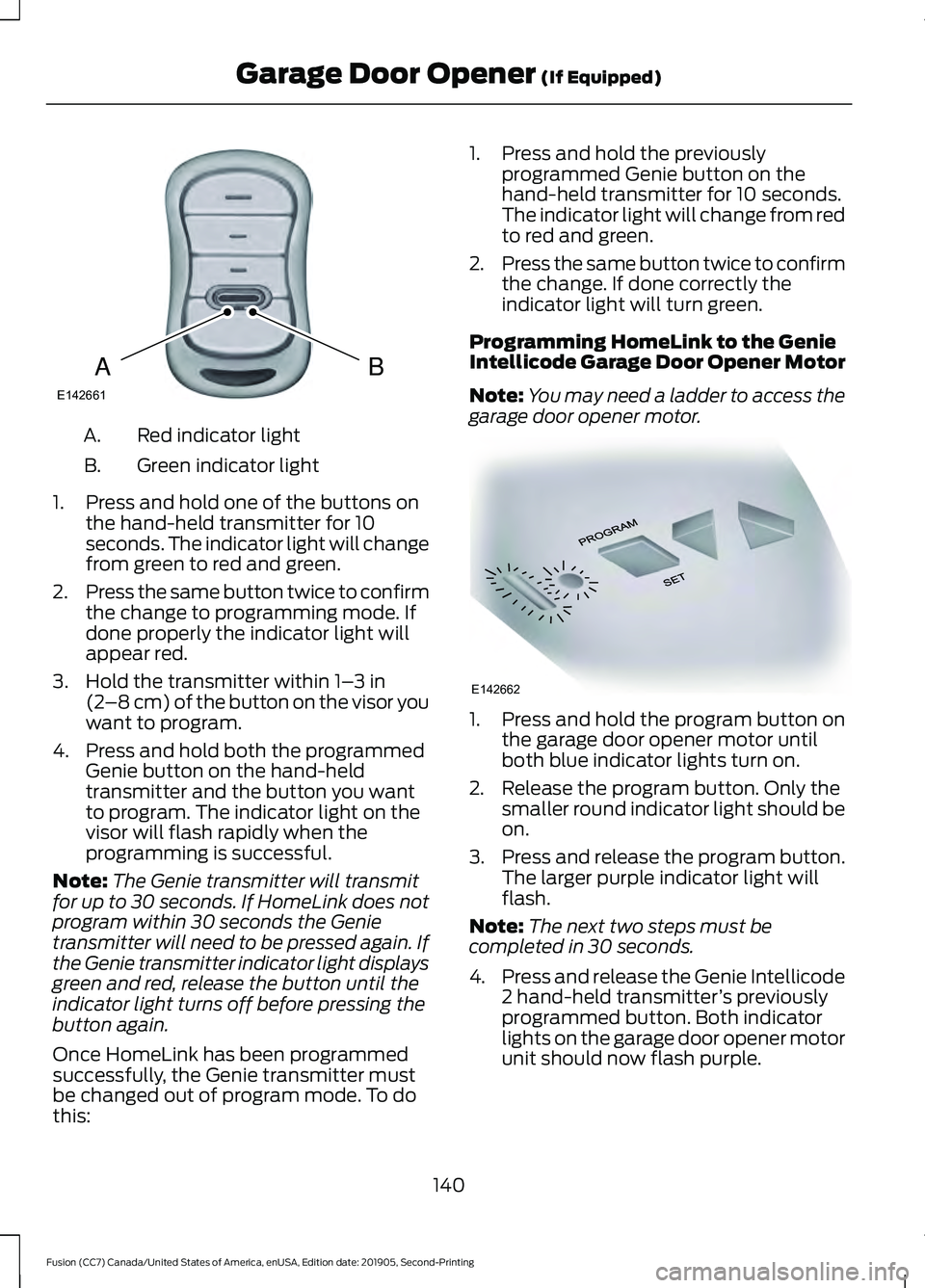 Fusion (CC7) Canada/United States of America, enUSA, Edition date: 201905, Second-Printing Garage Door Opener