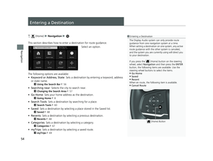 2Navigation P. 53Entering a Destination 54 Calculating the Route 72 Driving to Your Destination 75 Map Operation 82