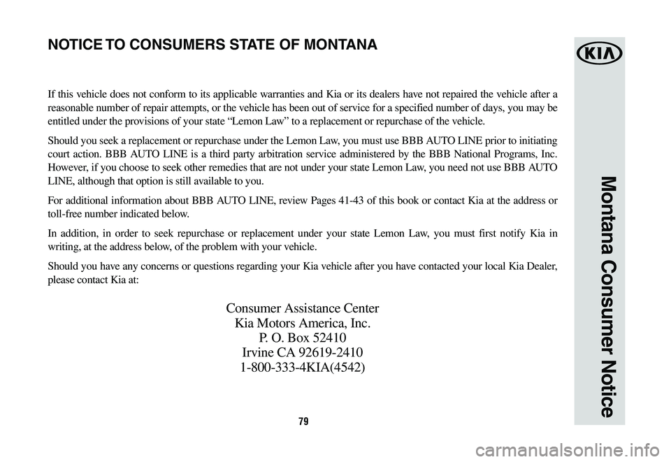 For additional information about BBB AUTO LINE, review Pages 41-43 of this book or contact Kia at the address