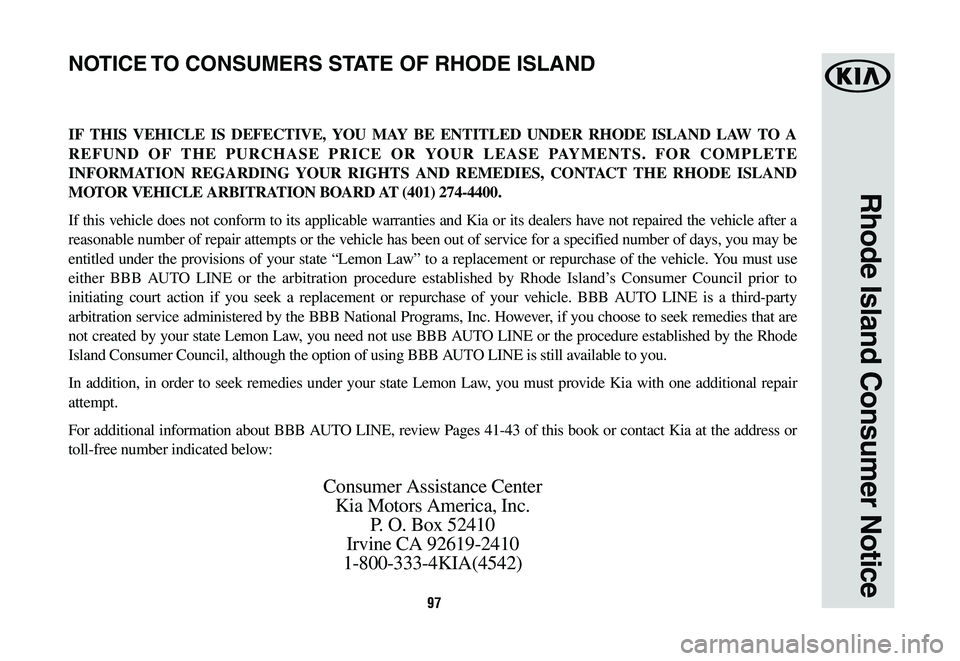 KIA TELLURIDE 2020  Warranty and Consumer Information Guide 97