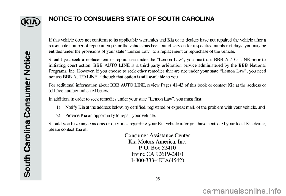 KIA TELLURIDE 2020  Warranty and Consumer Information Guide 98South Carolina Consumer Notice