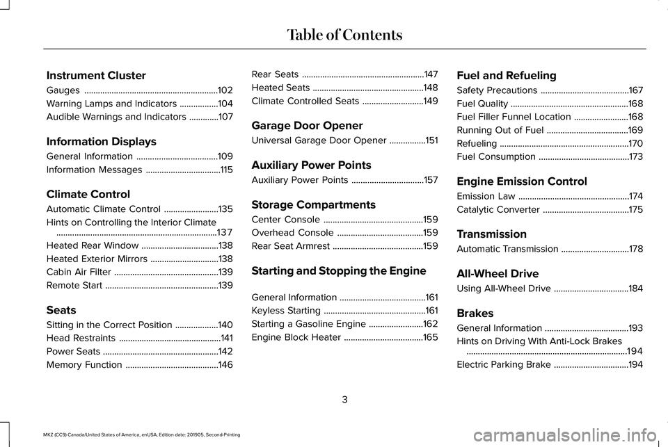 MKZ (CC9) Canada/United States of America, enUSA, Edition date: 201905, Second-Printing Table of Contents
