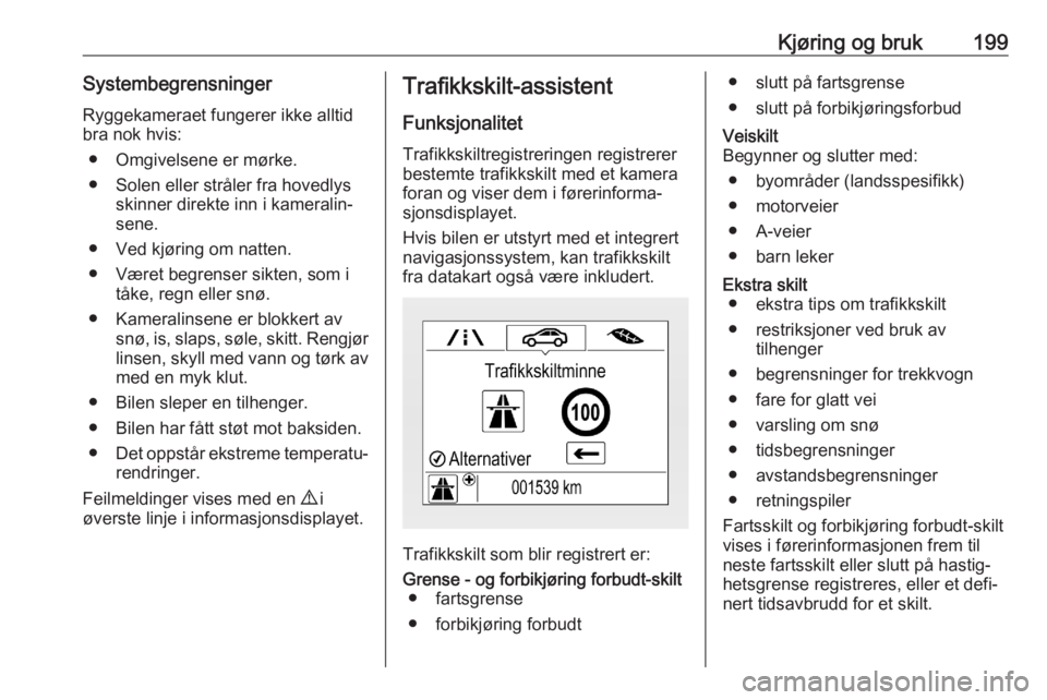 Kjøring og bruk199SystembegrensningerRyggekameraet fungerer ikke alltid