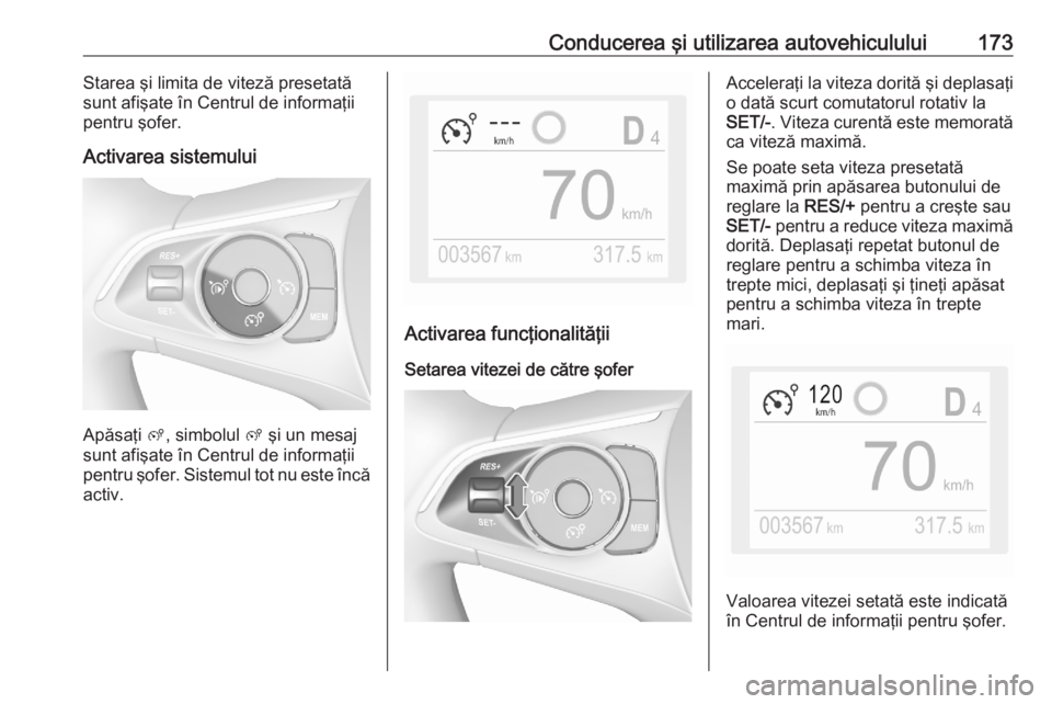 Conducerea şi utilizarea autovehiculului173Starea şi limita de viteză presetată
