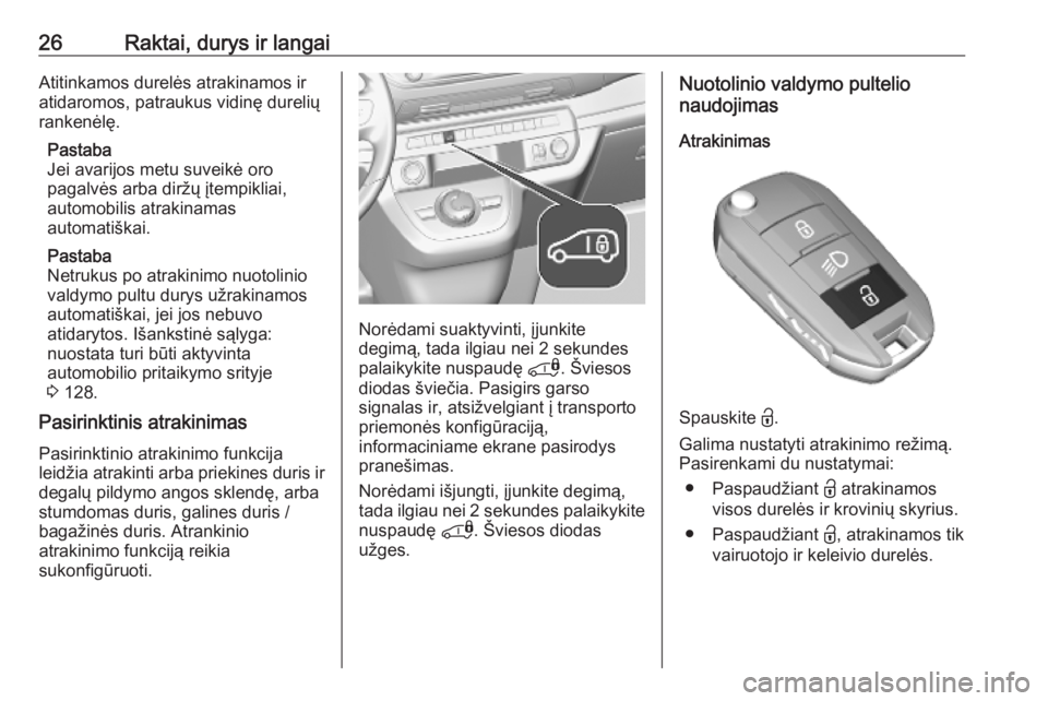 bako atlanką, jei atrakinus automobilį nuotolinio valdymo pulteliu arba