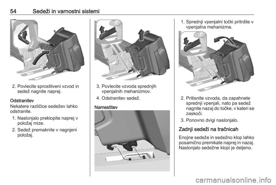 2. Sedež premaknite v nagnjeni položaj.3. Povlecite vzvoda sprednjih vpenjalnih mehanizmov.